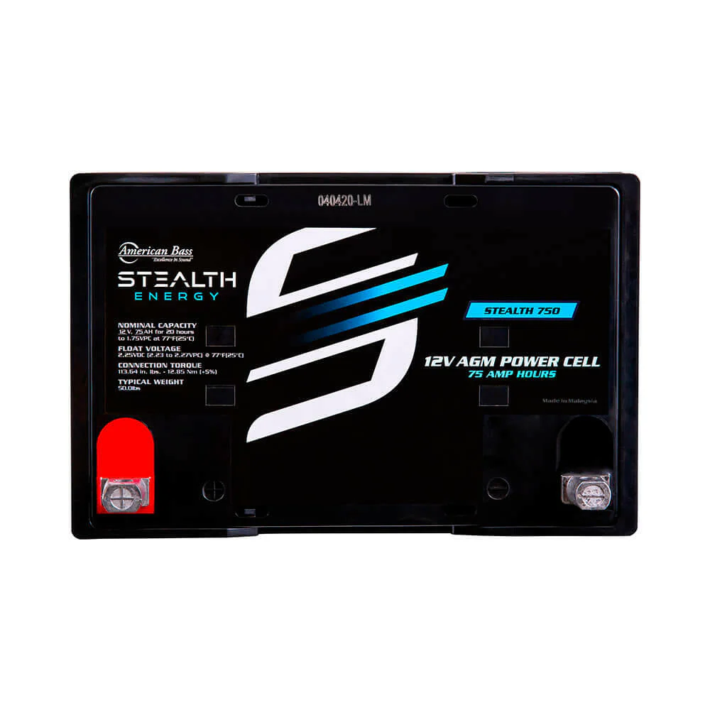 The Stealth 750 from Stealth Energy by American Bass delivers the deep reserve power that demanding car audio systems need. With 75 amp-hours of capacity and support for amplifier setups up to 1800 watts, this sealed AGM battery is engineered to reduce voltage drop, maintain stable output during hard bass hits, and keep your system sounding clean — whether you're competing or just enjoying the ride.
